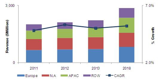 Food Emulsifiers: Market Revenue & Share, By geography, 2011-2018($Million)